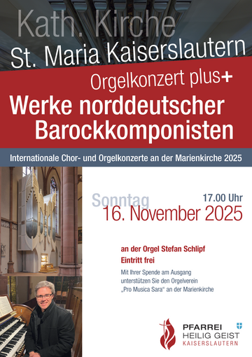 Sonntag, 16.11.2025 Uhrzeit: 17.00 Uhr Kaiserslautern, MarienkircheInternationale Chor- und Orgelkonzerte an der Marienkirche 2025 (Zusatzkonzert)
