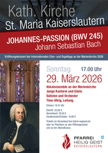 Am Sonntag, 29. März 2026 (Palmsonntag) um 17.00 Uhr wird dann die Bach’sche Johannes-Passion live in der Marienkirche Kaiserslautern aufgeführt. In Verbindung dazu steht der „Glaubensabend“, durch den man die Musik vielleicht noch einmal ganz anders hört.